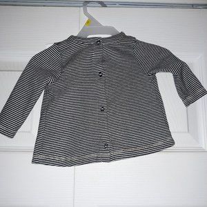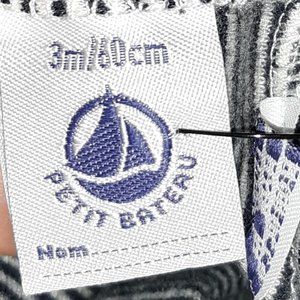 Petit Bateau 3M Infant Girls Navy Blue & White Striped Top. Used in good shape. Snap Closure in back. (d6)