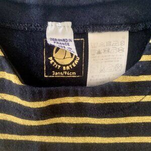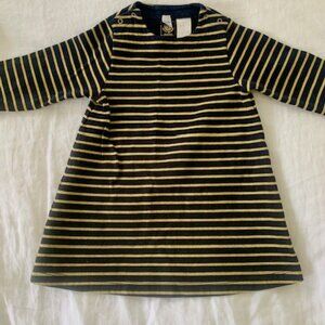 EUC - black and gold striped dress by French brand Petit Bateau. In great condition in a thick cotton, so can be worn fall and winter with tights. Size 3 (runs small)