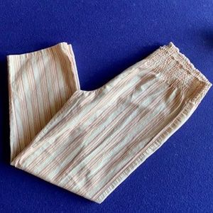 These Palazzo style pants are from the popular Petit Bateau, which is a well known, highly sought after French clothing brand. These pants feature a smock waist for ultimate comfort, and colorful vertical stripes. Lightweight for warm summer days, casual settings. Great for layering as a beach cover up. French designed