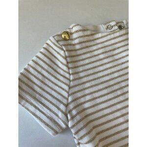 Petit Bateau Baby Girls' Gold Glitter Striped Tulle Dress sz12m. Great short sleeve dress with gold boat logo buttons and tulle sparkle skirt. Excellent condition!