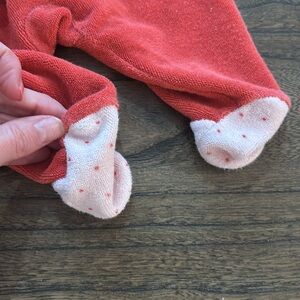 Hard to capture the color it’s pink and sort of red/coral terry cloth
