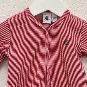 Petit Batou Red White Stripe Footie 6M