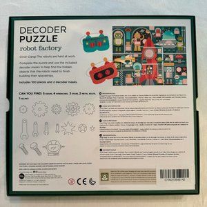 Complete the puzzle and find the hidden objects in this 100-piece Robot Factory Decoder Puzzle from Petit Collage! Click! Clang! The robots are hard at work.