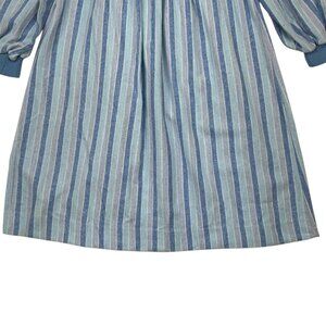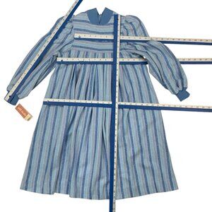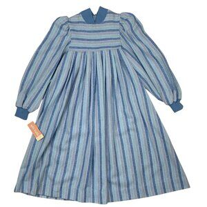 This Petit Diable girl's Vintage Flannel Dress makes a statement due to it's long sleeves, puff shoulders, zipper back, empire waist, unlined, blue ribbed trim and blue striped design.
