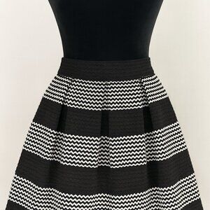 Petit Gateau Mini Skirt SZXL Black/White Stripe High Waist Flare Parisian