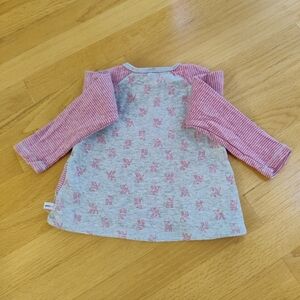 Used condition, mainly wash wear Size 12 months Peach and Gray color scheme Snap neck closure