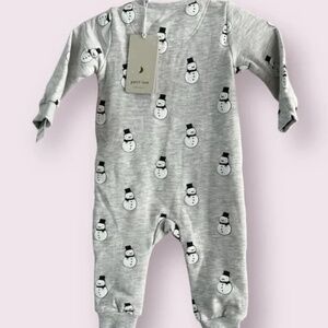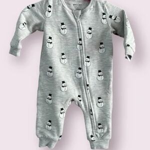 Petit Lem Holiday Snowman 6M Zippered One-Piece Pajamas Light Gray l NWT