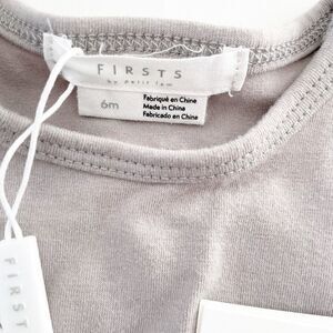 Unisex baby outfit with T-shirt and shorts. Shirt is grey with FRESH and outline of a lime on the front. Shorts have limes printed on white with elastic waist and cuffed hem. Harem style shorts. Size 6 months