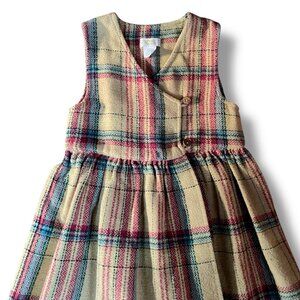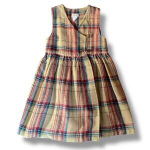 Petit Patapon Girls Jumper Dress Sz 6 Tan Plaid Cotton Wool Blend Preppy Classic