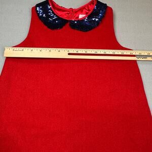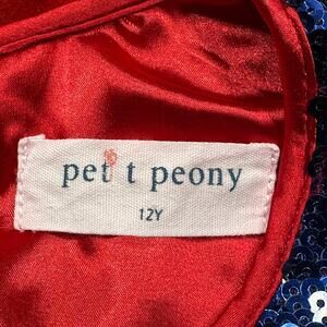 Petit Peony Dress Girls 12 Y Red Scallop Hem Sleeveless Blue Collar Sequin Lined