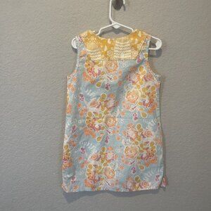 Petit Peony Girl 5 Y Dress Shift Sleeveless Blue Yellow Floral Summer Boutique