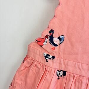Petit Peony Peach Pink Chicken Scallop Sun Dress. Toddler girl size 5T. Brand new with tag (NWT). Sleeveless pinafore style dress with fun chicken print. Fully lined with zipper in the back. Twin match available separately!