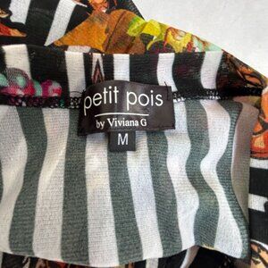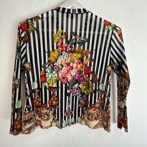 Petit Pois By Viviana G Womens Floral & Stripe Long Sleeve Mesh Top Medium Multi