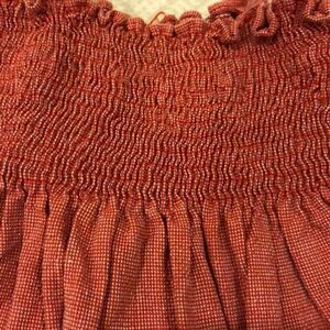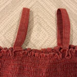 Barely worn adorable baby girl dress. Red with some white threading. Elastic at top. Thin spaghetti straps. Made of cotton. Rw2.