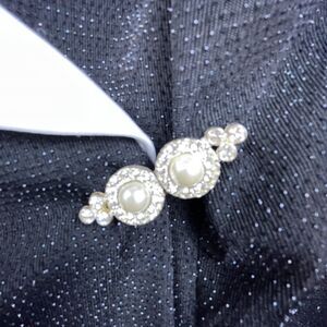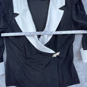 Petite Alex Evenings Blazer Womens PM White Satin Lapel Sparkle Metallic Jacket