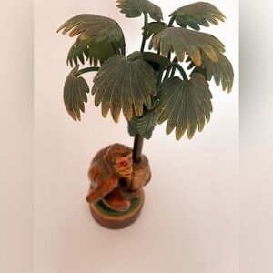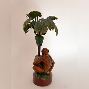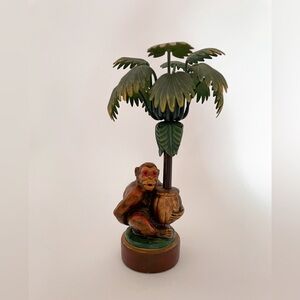 Petite Choses Monkey and Palm Tree Candlestick Holder Vintage Metal Candle