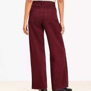 Brand new with tags. Loft brand. Smoked Garnet color. An effortlessly casual pant - with a topstitched center front seam. Sits at natural waist, 11 1/8" rise. Full length, 28 1/2" inseam. Seamed Wide Leg – fitted through the hip and thigh, relaxed through the leg. Front zip with button closure. Belt loops. Five pocket styling.Fit type - regular. Size 0 Petite.