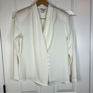 Petite Impressions Criss Cross Button Down VNeck Blouse Size 10