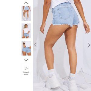 These denim shorts are essential for everyday bath. Featuring a light blue denim material with pockets and a frayed hem. Style these with a crop top, combat boots and complete the look with a blazer.