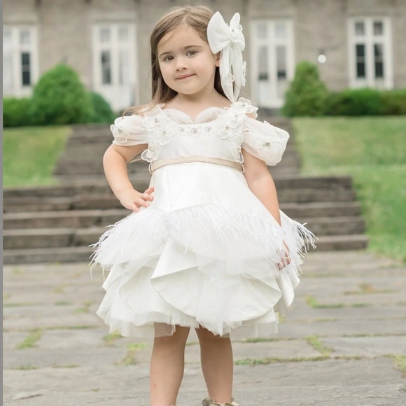 Petite Maison 2T Constanza White Dress with Champagne Bow