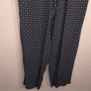 Petite Medium Vintage Sag Harbor Drawstring Blue Beige Floral Boho Pants Casual