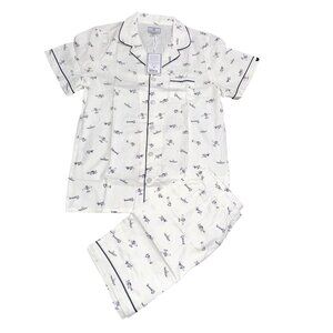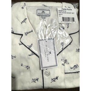 Petite Plume Kids Airplane Print Pajama Set Short Sleeve Button-Up 50% Cotton &