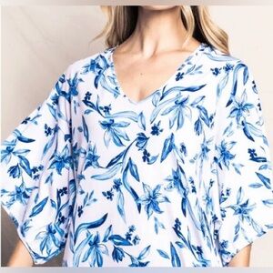 Petite Plume Peruvian Pima Cotton Sounds of Santorini Caftan Size Small NWOT