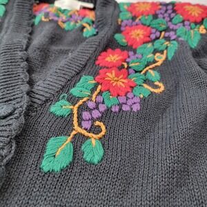 Petite Projections Small P Floral Embroidered Cardigan Knit Sweater Grapes Vines