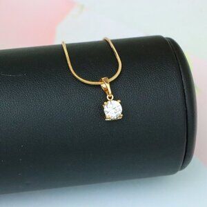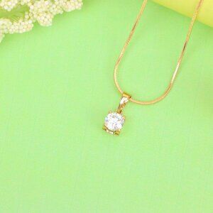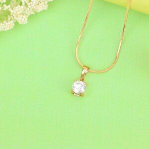 "Petite Round White Stone Rose Gold Pendant in Classic Solitaire Style, XPPT1514