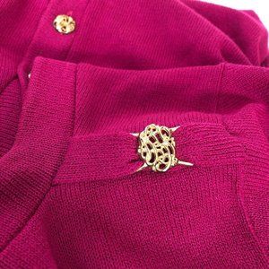 Petite San Remo 80's Magenta Sweater Cardigan Brass Buttons Shoulder Tab…