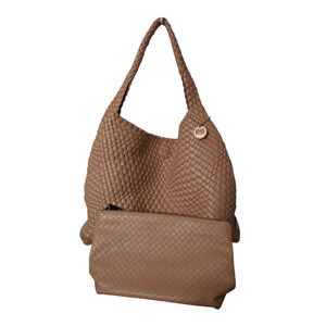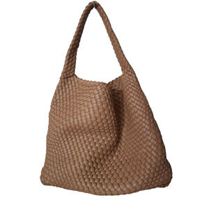 vegan leather hobo bag, woven shoulder bag, camel tote, cruelty-free handbag, textured vegan leather, slouchy bag, sustainable fashion, neutral accessory, modern minimalist, everyday style, boho, classic, city, large, slouchy, old money,
