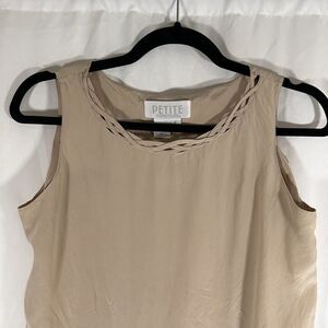 Petite Sophisticate 100% Silk Tank Top Women's P Beige Round Neck