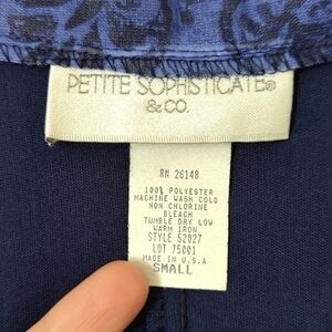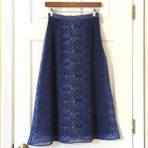 Petite Sophisticate 80's Vintage Motif Chiffon High Waisted Midi Skirt Blue S