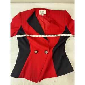 Petite Sophisticate Blazer Red Black Cinched 80s Twee Shoulder Pads Retro Office