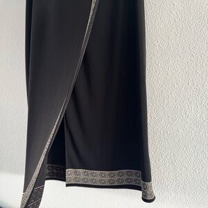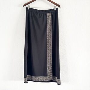 Petite Sophisticate Black Maxi Skirt Long Skirt Wrap Skirt Slit Skirt Medium M Retro Elegant Sophisticated Chic Versatile Timeless Evening Wear Formal Casual Dressy Work Office Night Out Date Night Subtle Patterned Hem Classic Style Flattering Silhouette Women Skirt Essential Polished High End Elevated Aesthetic Modest Slit Minimalist Blackout