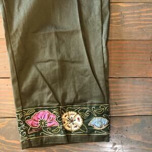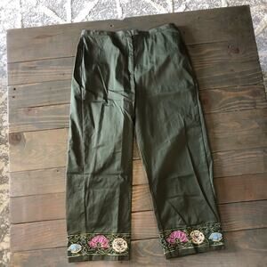 Petite Sophisticate Cropped army fall green embroidered pants women's size 10