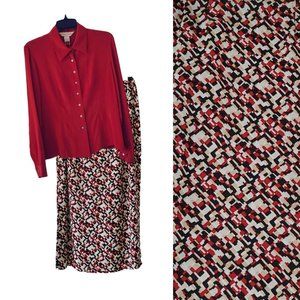 Petite Sophisticate Geometric Maxi Skirt | NWOT | 2P | Navy Blue Red White Beige