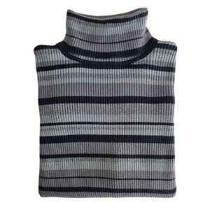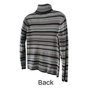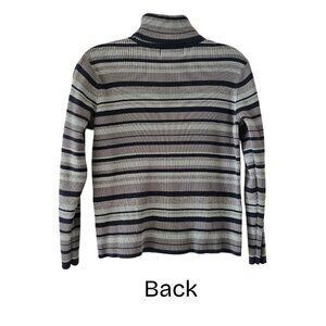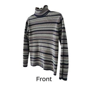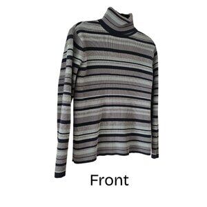 Effortlessly elevate your everyday look with this Women's Petite Sophisticate striped ribbed turtleneck sweater. Circa late 90s, early 2000s.