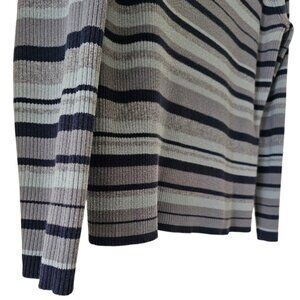 Petite Sophisticate LS Striped Ribbed Turtleneck Top | GUC | MP | Blue Gray