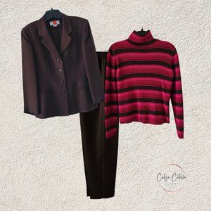 Effortlessly elevate your everyday look with this Women's Petite Sophisticate striped ribbed turtleneck sweater. Circa late 90s, early 2000s. I LOVE these two colors together. I have wool jackets both in brown & pink that I will soon post. Looks sharp with brown pants, a skirt, or jeans.