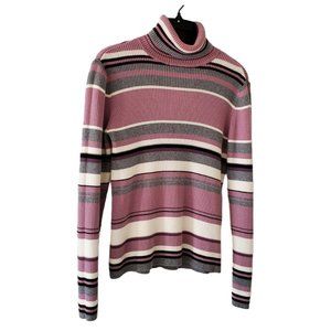 Petite Sophisticate LS Striped Ribbed Turtleneck Top | Like New | XSP | Mauve