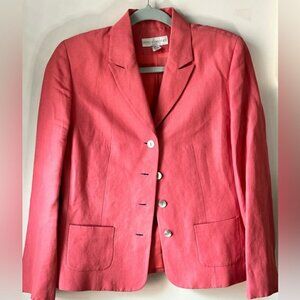 Pre-owned Petite Sophisticate Linen Blend Pink Dress with Jacket. Jacket has front pockets.
