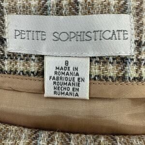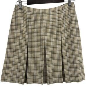 Petite Sophisticate Pleated Plaid Skirt 8P Tan Vintage 1990s Light Academia Prep