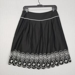 Petite Sophisticate S Petite A-Line Skirt Black Embroidered Scallop Hem Modest