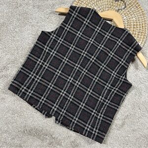 Petite Sophisticate Vintage 90s Wool Blend Cropped Vest Plaid Academia in Gray 6