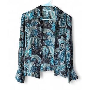 Petite Sophisticate Women’s 100% Silk Blue Brown Paisley Button Up Shirt Size 4. Condition is Pre-owned - Excellent.