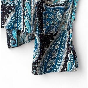 Petite Sophisticate Women’s 100% Silk Blue Brown Paisley Button Up Shirt Size 4