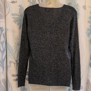 Petite Sophisticate Charcoal Grey + Silver Silk Blend Cardigan Sweater Sz M