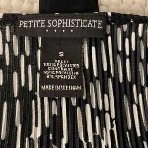 Petite Sophisticates Women's long sleeve v neck black/white top/blouse tie in th
