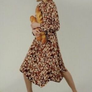 Petite Studio Alexa Dress Abstract Button Front Asymmetrical Midi Size M